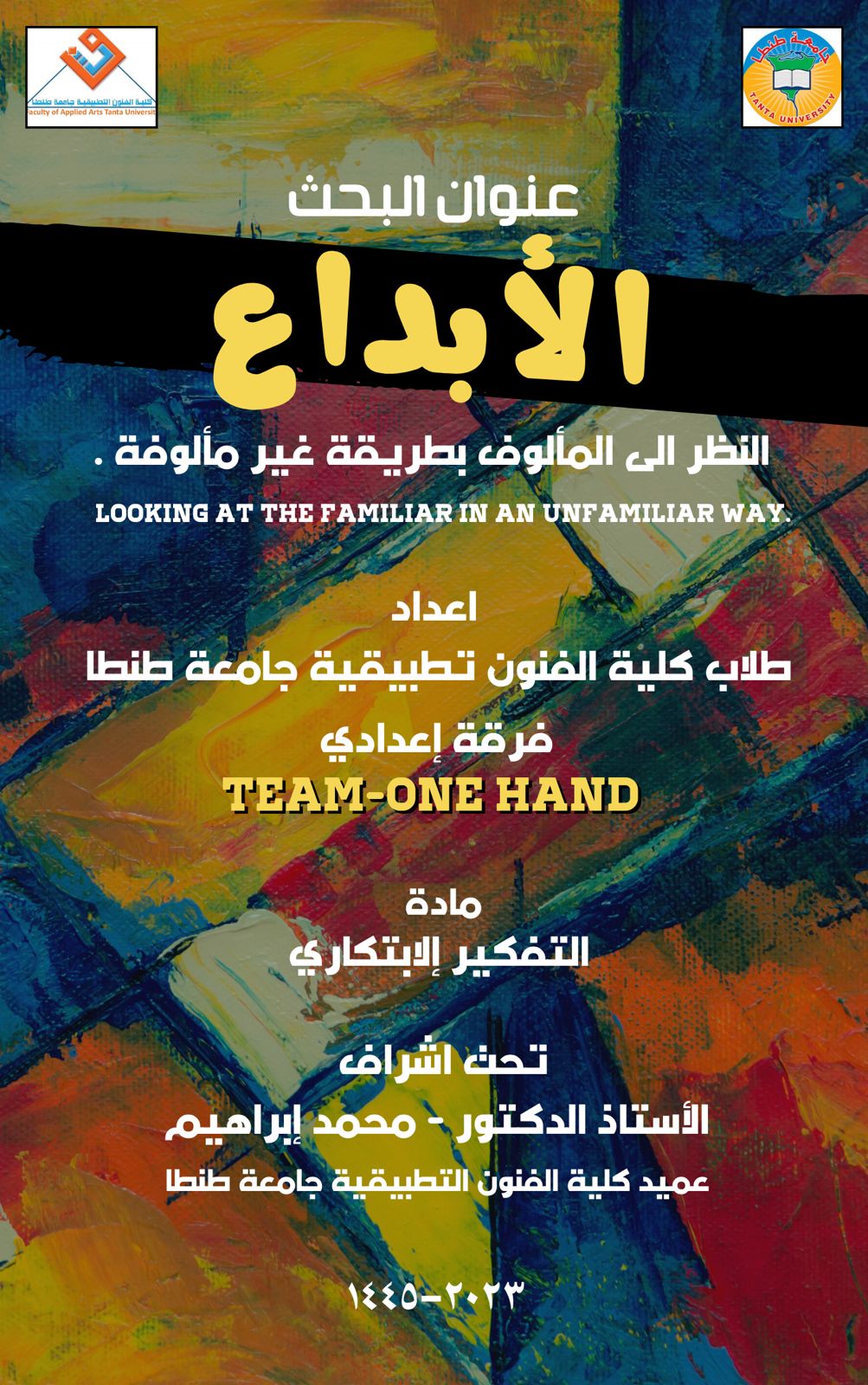 في ظل سعي الكلية إلى الريادة وتطوير العملية التعليمية، وانطلاقًا من إيمان الكلية بأن تنوع أساليب التدريس والتعلم له أثر عظيم على مقدرة الطالب علي الاستيعاب تم انعقاد مناقشة بحث مقدم لمجموعة من طلاب الفرقة الإعدادية بعنوان "الإبداع : النظر إلى المألوف بطريقة غير مألوفة " وذلك تحت إشراف الأستاذ الدكتور /محمد إبراهيم القائم بأعمال عميد الكلية