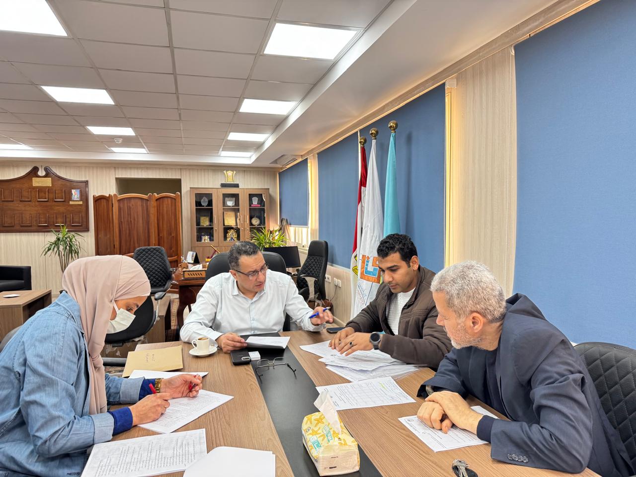 اجتمع الأستاذ الدكتور محمد ابراهيم محمد القائم بأعمل عميد الكلية والقائم بعمل رئيس مجلس قسم الغزل والنسيج والتريكو بأعضاء مجلس القسم