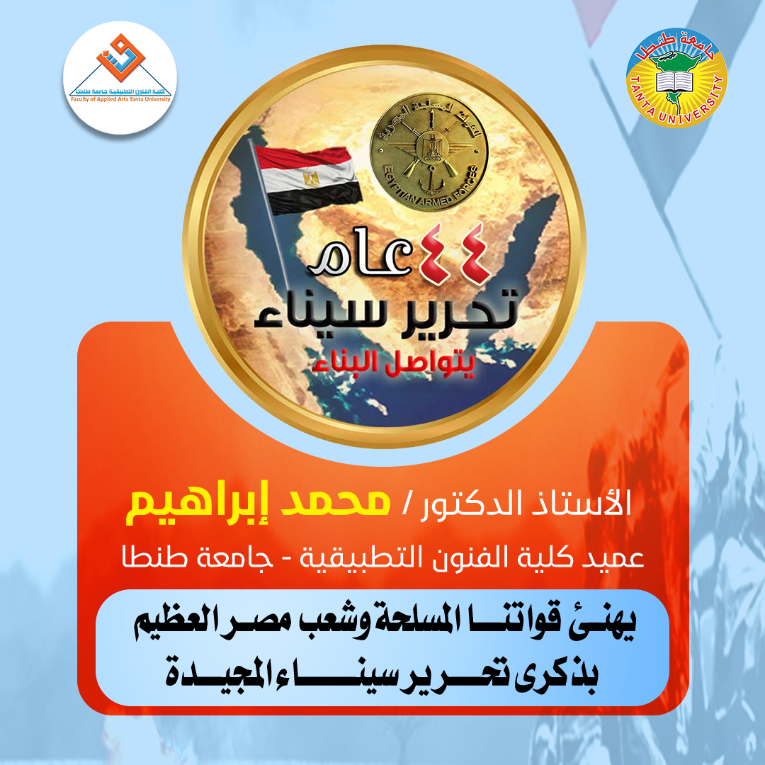 عميد تطبيقية طنطا يهنئ الرئيس السيسي بمناسبة الذكرى الــ 44 لعيد تحرير سيناء